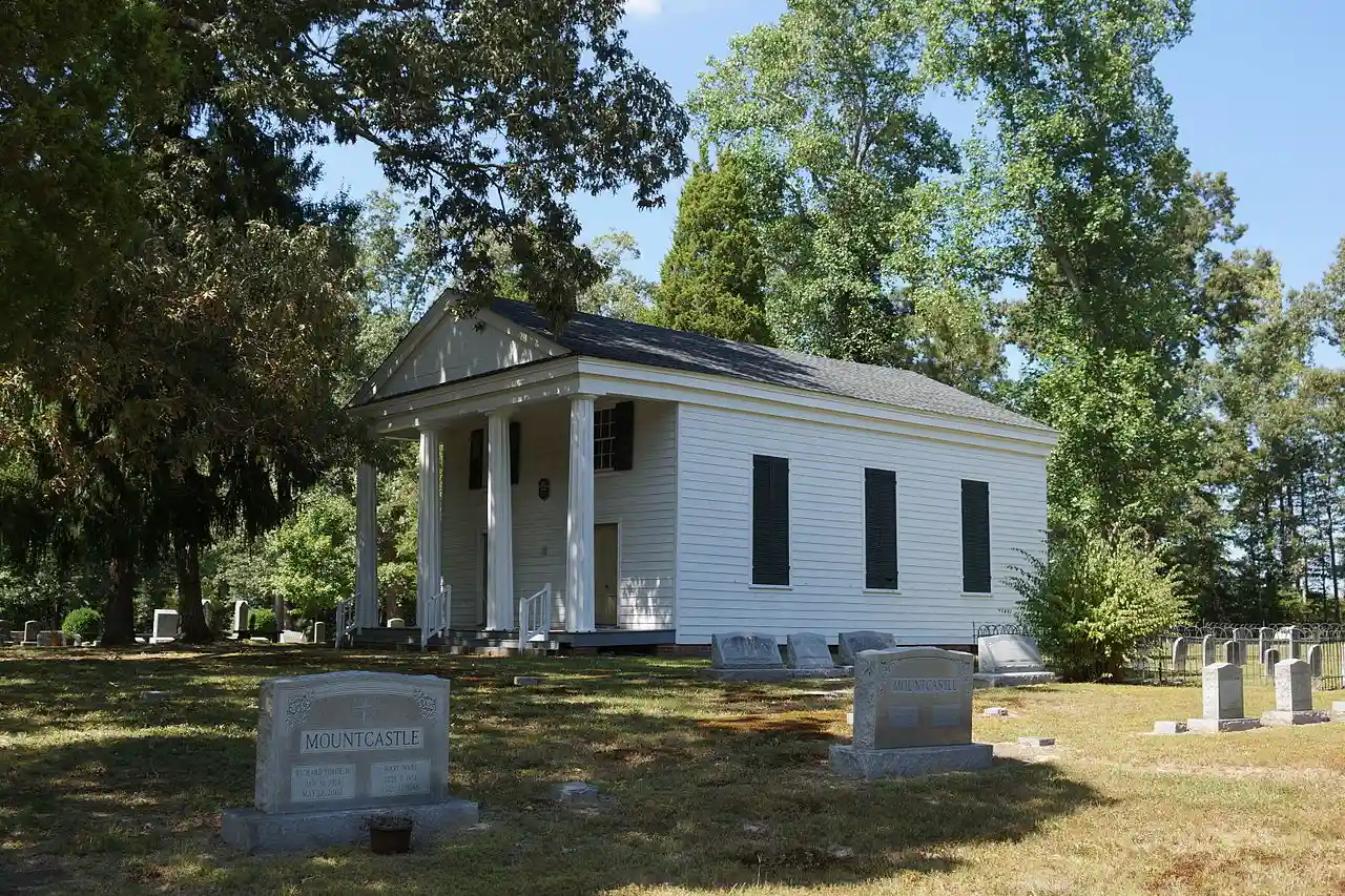 Olivet Presbyterian Church is a historic Presbyterian church located near Providence Forge, New Kent County, Virginia. It was built in 1856, and is a small frame church building in the Greek Revival style. It features a flush-boarded, pedimented portico with four fluted Greek Doric order columns. and Accompanying photo Read more on Wikipedia