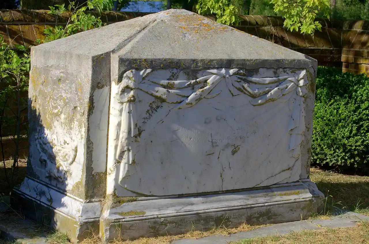 Custis Tombs, also known as Custis cemetery at Arlington, is a historic family burial ground located near Cheapside, Northampton County, Virginia. It consists of two tombs surrounded by a poured concrete platform raised a few inches above ground level. It includes the grave of John Custis (c. 1629–1696), Major General and member of the Council for Virginia and progenitor of the Custis family in America. The other tomb is the box-like marble tomb of John Custis IV (1678–1749) with its pyramidal top and drapery carvings on the long sides. and Accompanying photo The tombs were associated with Arlington mansion and located west of the separately listed Arlington Archeological Site. Read more on Wikipedia