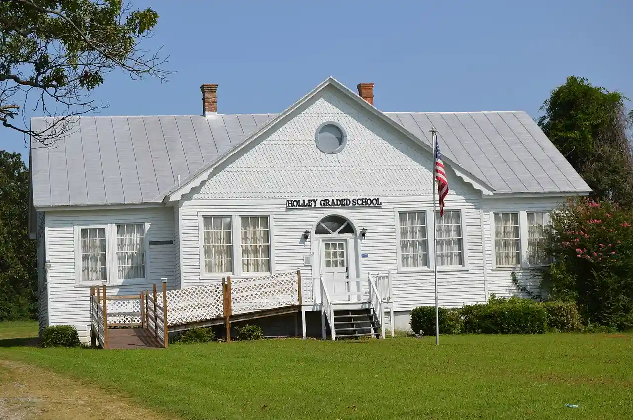 Holley Graded School is a historic school building for African American students located at Lottsburg, Northumberland County, Virginia. It was built in stages between about 1914 and 1933, and is a one-story, cross-shaped plan building. It features four identical-sized classrooms, a central passage, two cloakrooms and a kitchen. It was used as a schoolhouse until 1959, and subsequently used as a combination museum and adult-education facility. and Accompanying photo Read more on Wikipedia