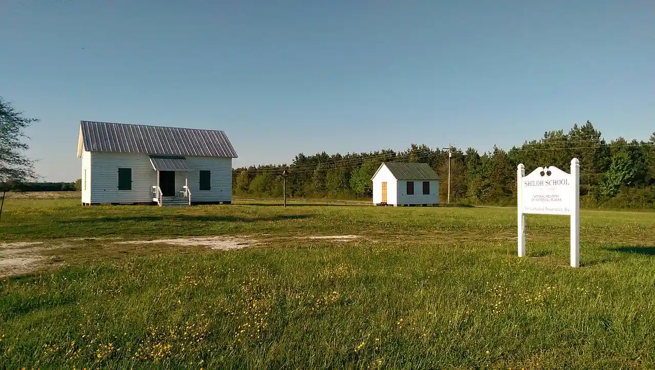 Shiloh School is a historic one-room school building located near Kilmarnock, Lancaster County, Virginia. It was built in 1906, and is a one-story, three-bay, simple frame building measuring 20 feet by 34 feet. It sits on a brick foundation and has a standing seam metal gable roof. Jessie Ball duPont (1884-1970) taught at the school in 1906–1907. It was used as a schoolhouse until 1929, and subsequently used for farm storage. and Accompanying photo Read more on Wikipedia