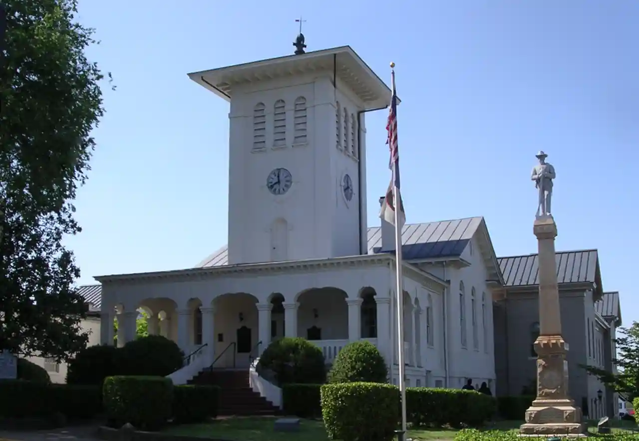 Orange County Courthouse is a historic courthouse complex located at Orange, Orange County, Virginia. It was built in 1858–1859, and is a 1 1/2-story, Italian Villa style brick structure. The front facade features a three-part arcade consisting of a semi-elliptical arch flanked by small semicircular arches. Above the arcade is a three-stage tower consisting of the main entrance as the first stage; a clock, installed within existing round windows in 1949, as the second stage; and arched openings with louvres covered by a shallow hip roof and topped by a finial complete the tower. Associated with the courthouse are the contributing clerk's office (1894) and jail (1891). and Accompanying photo Read more on Wikipedia