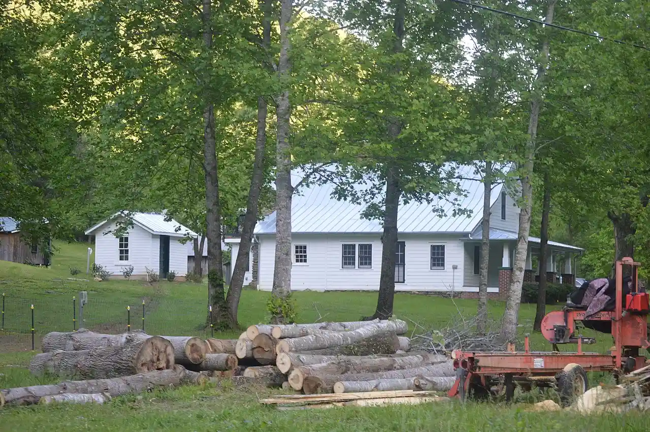Barnard Farm is a historic home and farm complex located near Ararat, Patrick County, Virginia, United States. The original section of the house dates to 1829, with expansions about 1851 and in the 1930s. It is a two-story, log and frame dwelling with interior Greek Revival style decorative detailing. The front facade features a one-story American Craftsman style porch. Also on the property are the contributing Barnard's Store (early 1950s), Kibler Post Office, garage (late 1910s), granary, spring house, cellar, chicken house, Barnard Cemetery, corn mill, barn and tobacco barn, outbuilding, pack house, and two tenant houses. and Accompanying four photos Read more on Wikipedia