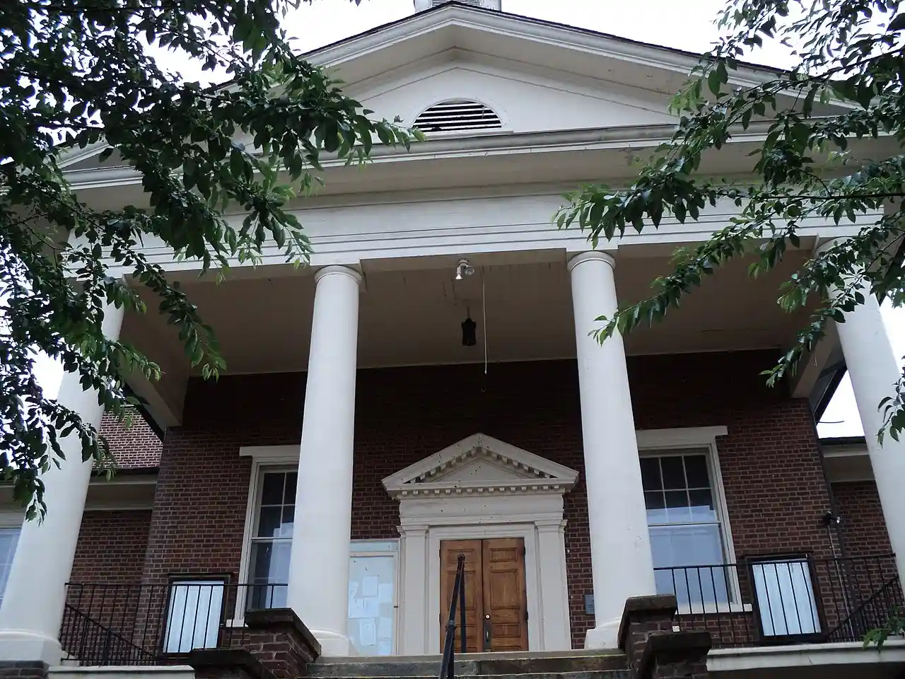 Patrick County Courthouse is a historic courthouse building located at Stuart, Patrick County, Virginia. It was built in 1822, and is a two-story, brick building consisting of a projecting, three-bay central block with flanking wings in the Jeffersonian Roman Revival style. The front facade features a pedimented portico supported by four Tuscan order columns. It is topped by a small bell tower. The building was remodeled in 1928, and refurbished in 1936 and 1971. and Accompanying photo Read more on Wikipedia