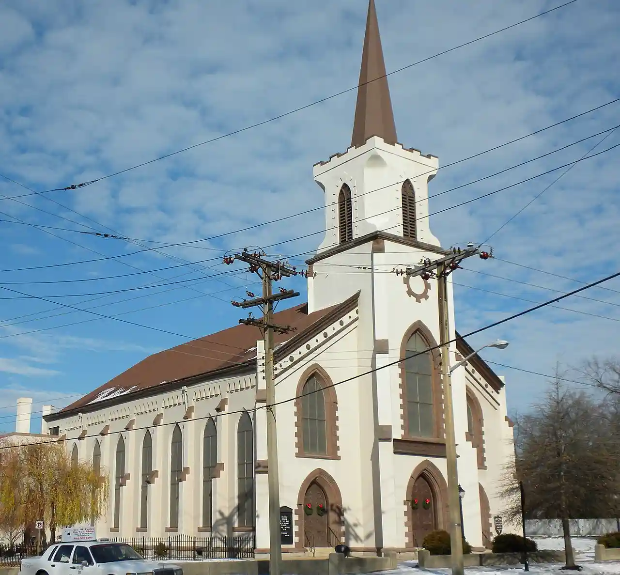 Second Presbyterian Church is a historic Presbyterian church located at 419 W. Washington St., Petersburg, Virginia. It was designed by architect and church pastor Theodorick Pryor and was built in 1861–1862, in the Gothic Revival style. It has stucco covered brick walls and a tower that protrudes from the central bay of its three-bay entry facade. The interior features iron ornamentation, cast by a foundry in Petersburg at the beginning of the American Civil War. and Accompanying photo Read more on Wikipedia