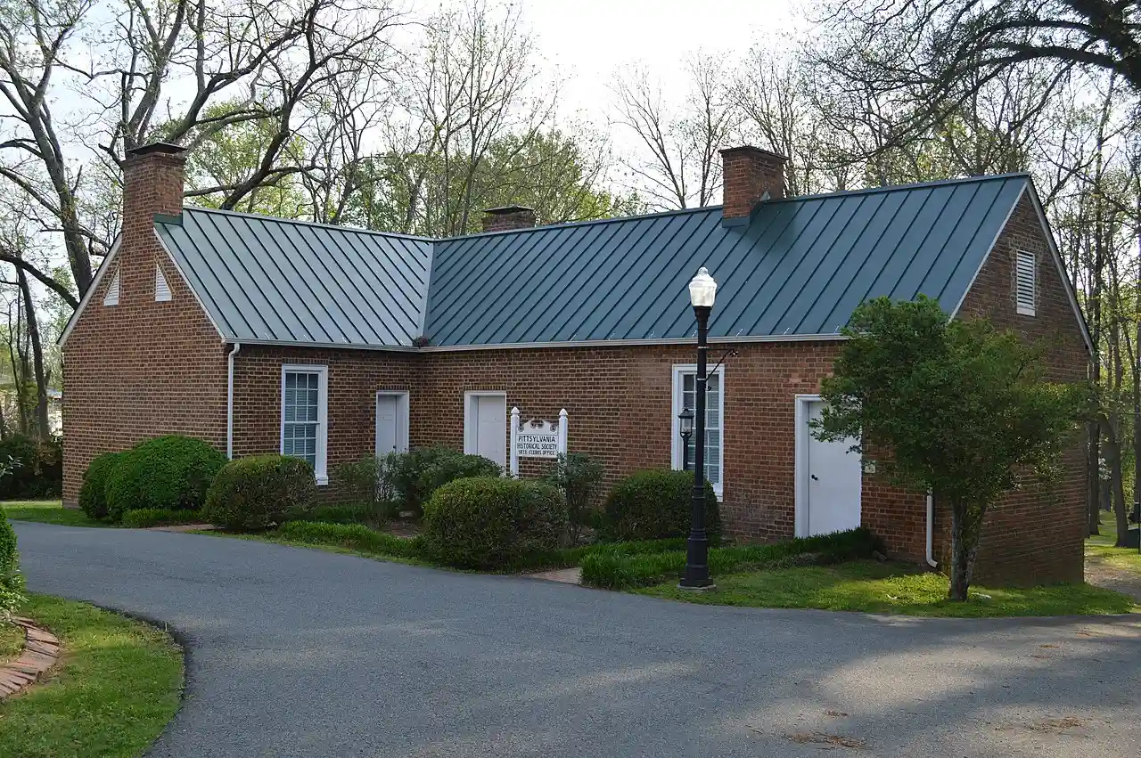 The Pittsylvania County Clerk's Office is a historic county clerk's office located at Chatham in Pittsylvania County, Virginia. It was built in 1812, and is a one-story, L-shaped brick structure. It housed the county clerk's office until 1853, when those offices were moved to the newly constructed Pittsylvania County Courthouse. and Accompanying photo The building was restored by the Pittsylvania County Historical Society and houses a small museum. Read more on Wikipedia