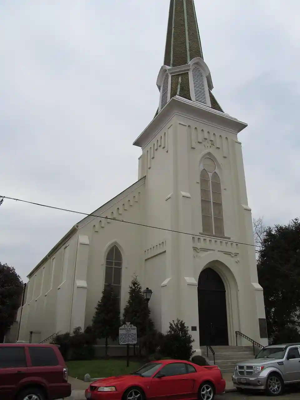 Monumental United Methodist Church, formerly known as Dinwiddie Street Methodist Church, is a historic Methodist church located in Portsmouth, Virginia. It is a five-bay brick and stucco, Victorian Gothic style church. It is features a 182 feet tall, two part central tower. The church was built between 1871 and 1876 on the foundations of an earlier 1831 building that had burned in 1864. and Accompanying four photos Read more on Wikipedia