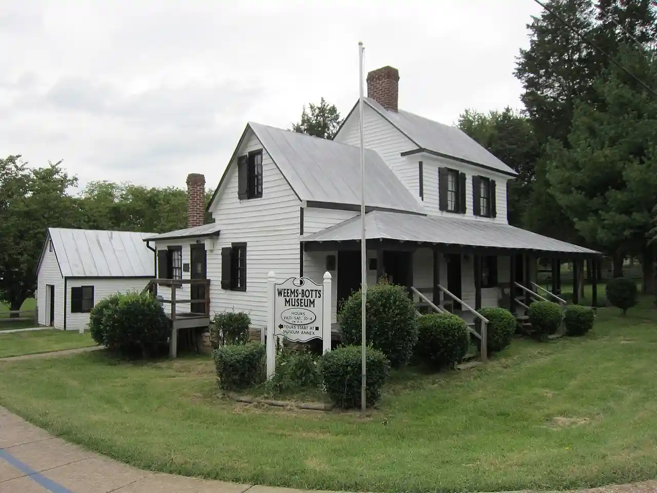 Weems–Botts House Museum is a small historic museum in Dumfries, Virginia, United States. The museum includes the landmark Weems–Botts House on the corner of Duke Street and Cameron Street and the Weems–Botts Museum Annex, which houses the Lee Lansing Research Library and Archive, located at 3944 Cameron Street. Both buildings are located in Merchant Park. The park's bandstand commemorates William Grayson, one of Prince William County's most respected citizens and one of Virginia's first senators.Prince William County Historical Commission. Wieder, Laurie C.: Editor. Prince William: A Past to Preserve. Prince William County Historical Commission: Publisher. 1998. Ref. p. 31. The museum tour showcases the history of Dumfries, Virginia's oldest chartered town, and people associated with the house, including Mason Locke "Parson" Weems, and attorney Benjamin Botts.Historic Dumfries Virginia, Inc Read more on Wikipedia