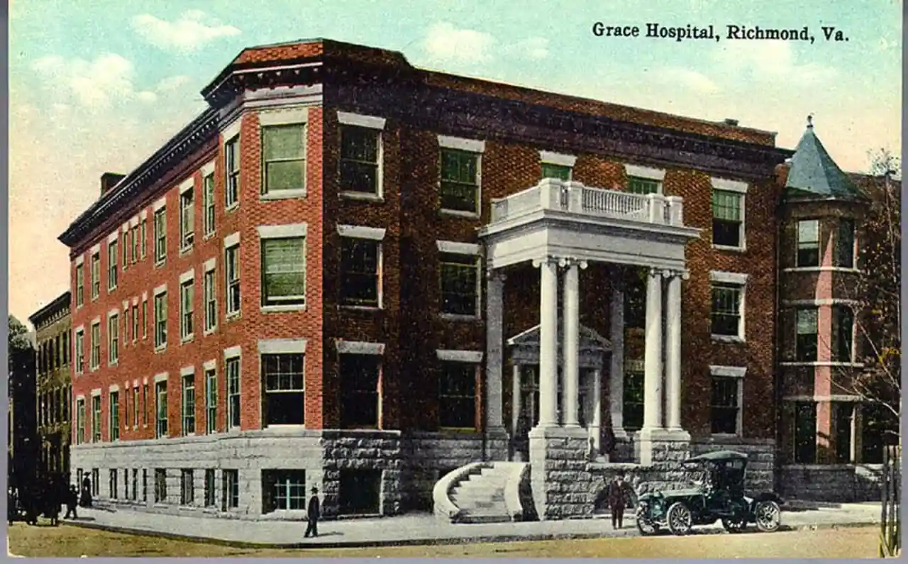 Grace Hospital is an American historic hospital in Richmond, Virginia. The original Colonial Revival structure was built in 1911 based on a design by noted Virginia architect Charles M. Robinson. The hospital is located to the west of Richmond's central business district and was substantially expanded by additions in 1930 and 1964. The original three-story main structure with an entrance pavilion on West Grace Street, is a Colonial Revival building with paired Ionic order columns and gauged arches. In 1930, a five-story Moderne style addition was built to the south along Monroe Street. In 1964, a further three-story addition was built along Grace Street. The 1964 addition is devoid of ornamentation, and the west wing "projects a modern, utilitarian character." and Accompanying four photos Read more on Wikipedia