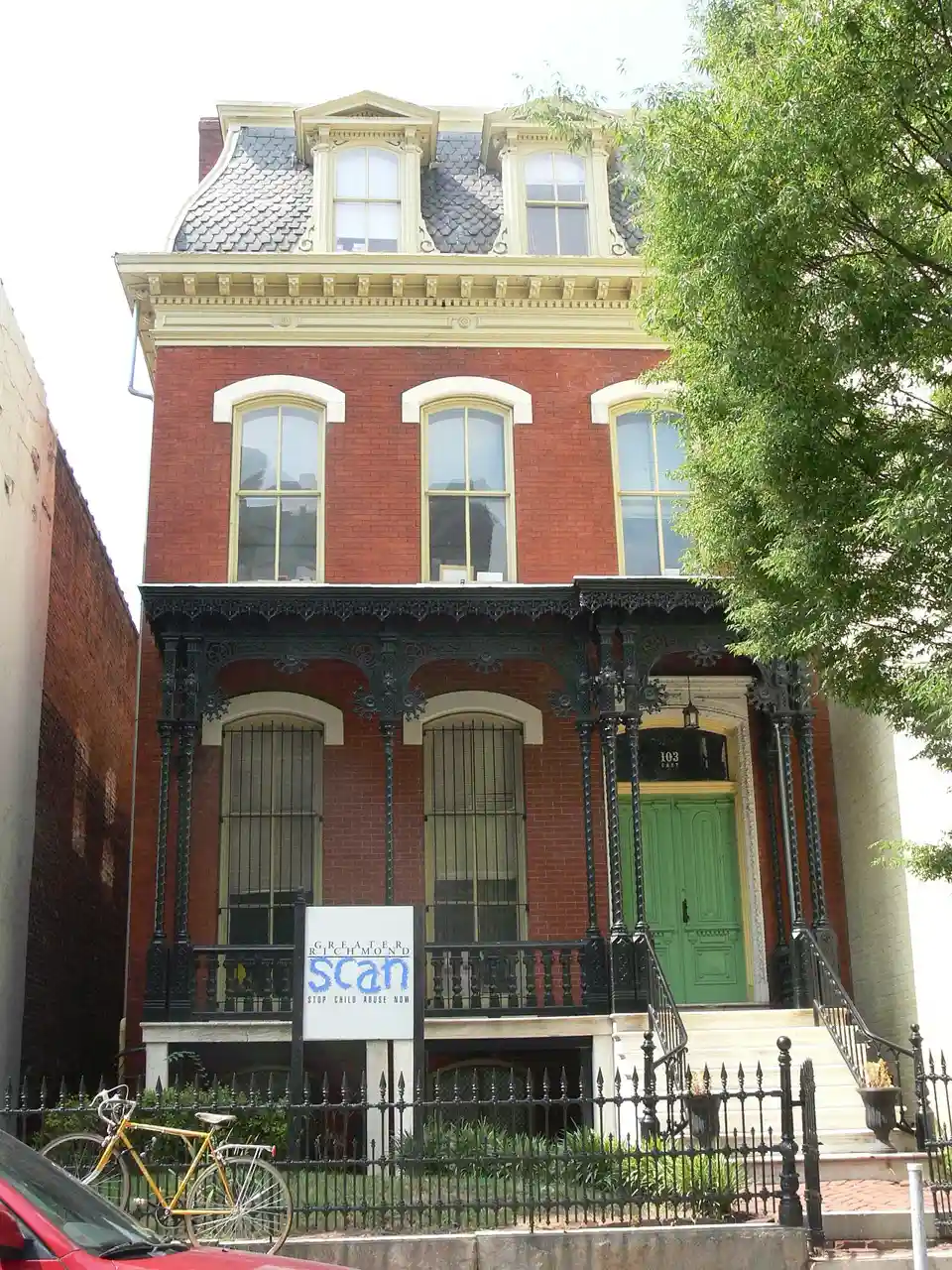 Joseph P. Winston House, also known as the Winston House, is a historic residence in Richmond, Virginia, United States. It was built in 1873-1874 for wholesale grocer Joseph P. Winston, and is a -story, three-bay, brick residence. It features a half-story, ogee-curved mansard roof with black slate shingles. It also has an elaborate cast-iron front porch and original cast-iron picket fence with gate. Also included is the adjacent Richmond Art Company Building. It was designed in 1920 by prominent architect Duncan Lee, and is a three-story, stuccoed brick building in a Spanish-Mediterranean Revival style. and Accompanying photo Read more on Wikipedia