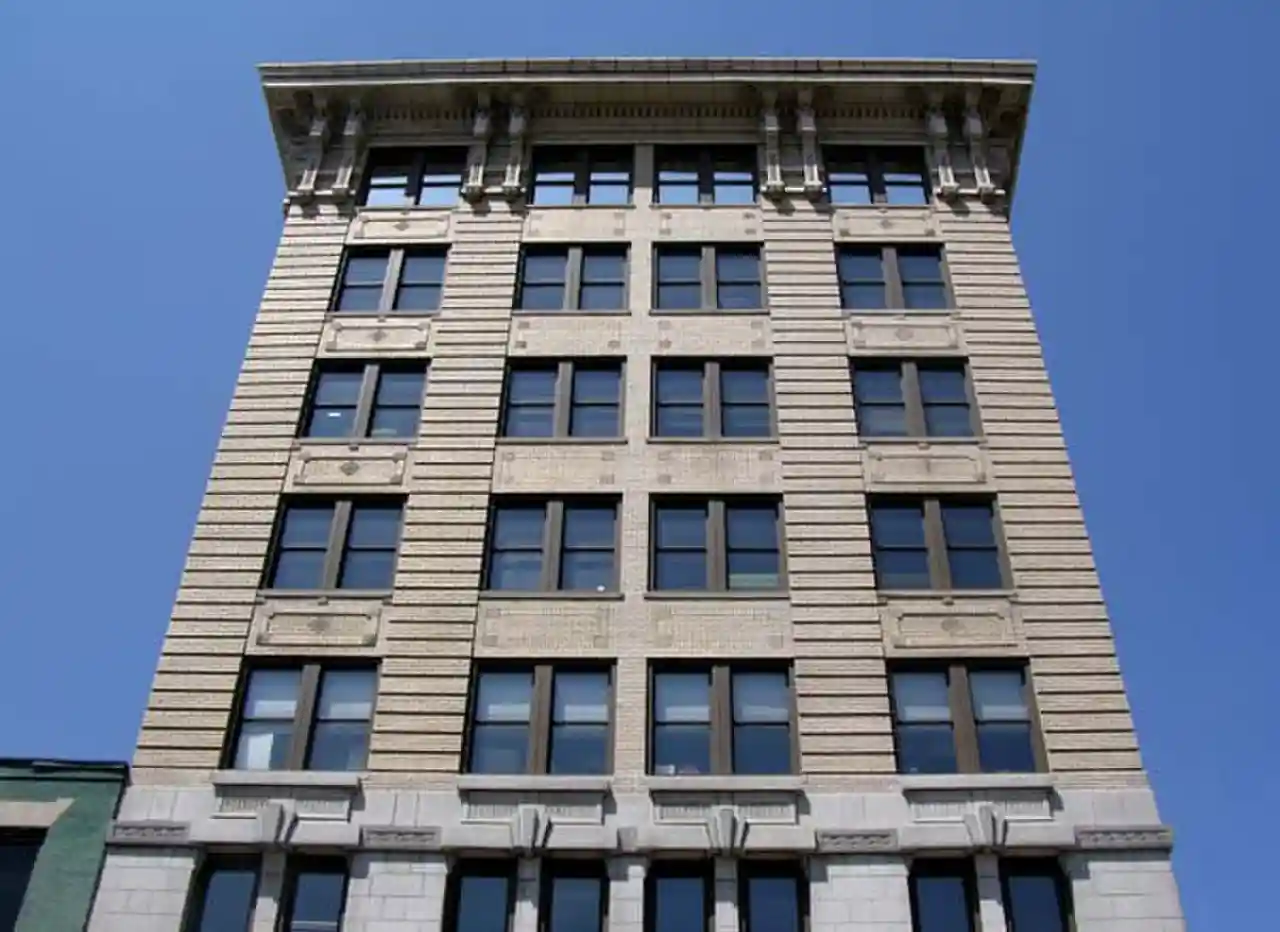 First National Bank, also known as People's Federal Building and Liberty Trust Co., is a historic bank and office building located at Roanoke, Virginia. It was built in 1910, and is a seven-story, granite and buff-colored brick building in the French Renaissance style. It features a Roman Ionic columned main entrance and Doric columns in the main banking hall derived from the Temple of Apollo at Delos. and Accompanying photo Read more on Wikipedia