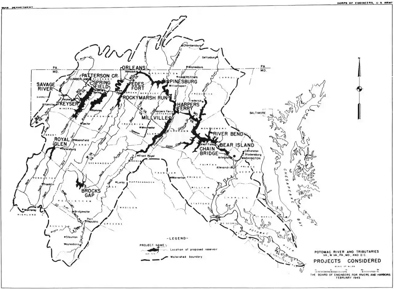 Brocks Gap Dam was a never-built proposal for a water storage dam on the North Fork of the Shenandoah River at Brocks Gap in northwest Virginia. The proposal by the U.S. Army Corps of Engineers encountered opposition from local residents and was withdrawn in 1967. Read more on Wikipedia