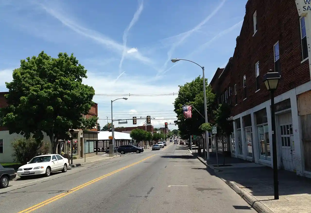 Downtown Salem Historic District is a national historic district located at Salem, Virginia. The district encompasses 34 contributing buildings and 1 contributing site in downtown Salem. The district includes primarily mixed-use commercial buildings, but also includes churches, dwellings, a courthouse, a post office, a library, a park, and the covered stalls of a farmer's market. The buildings mostly date from the late-19th and early-20th century and are in a variety of popular architectural styles including Greek Revival, Italianate, and Queen Anne. Notable buildings include the Stevens House or "Old Post House" (1820s-1830s), Kizer-Webber Building (1883-1886), Duval-Oakey House (1891-1898), Salem High School (former, 1911-1912), Old Salem Municipal Building and Fire Department (1925), Quality Bakery Building (c. 1903-1913), Olde Newberry Building (1929), Salem Theater (former, 1930), and James J. True Building (1927). Located in the district are the separately listed Old Roanoke County Courthouse, Salem Presbyterian Church, and Salem Post Office. and Accompanying photo and Accompanying map Read more on Wikipedia