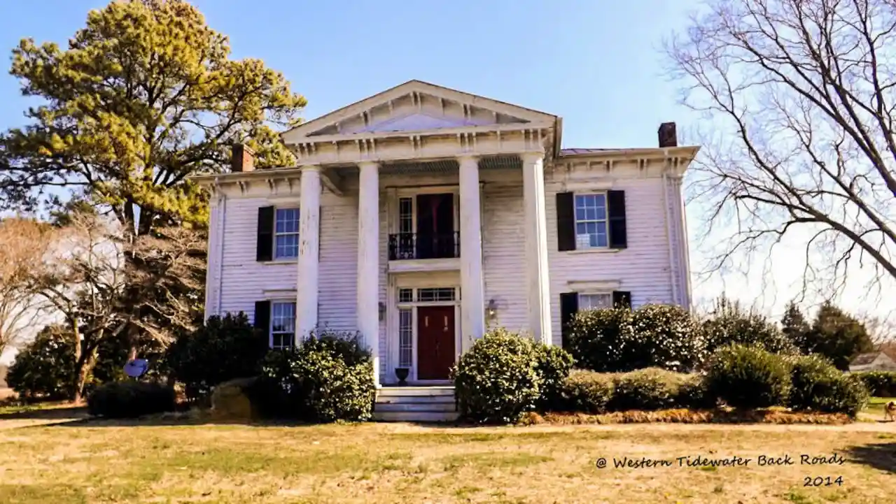 Sunnyside is a historic plantation house and complex located near Newsoms, Southampton County, Virginia. The house was built in three stages dating to about 1815, 1847, and 1870. It is a two-story, T-shaped frame dwelling. The main section was built in 1870, and has Greek Revival and Italianate design elements. The front facade features an imposing, two-story, pedimented portico sheltering the main entrance. Also on the property are 13 contributing outbuildings: a schoolhouse, school master's house, dairy, milk house, tenant's house, privy, pump house, sheds, peanut barn, a tall smokehouse, kitchen-laundry, and a garage. and Accompanying photo Read more on Wikipedia