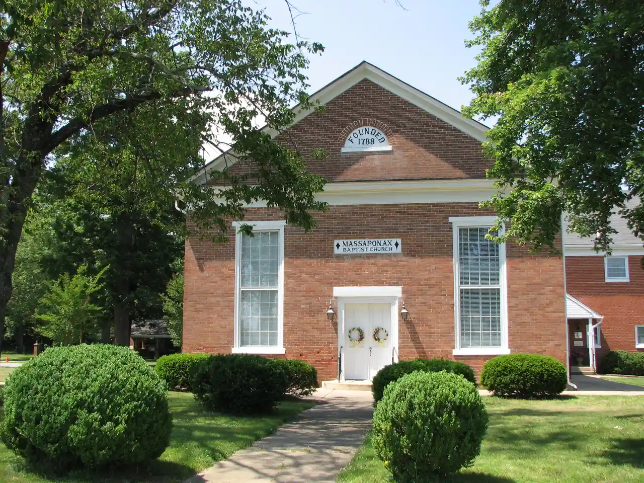 Massaponax Baptist Church is a Baptist church built in the Greek Revival style, located in Spotsylvania County, Virginia. It is affiliated with the Southern Baptist Convention. The Baptist congregation that built the church was established in 1788 at a small church near Massaponax Creek. When that building became too small to hold the growing congregation, the church was moved to its present location at the intersection of U.S. Route 1 and State Route 608 (Massaponax Church Road). The new church was a small, frame building which was also outgrown. In 1859, the current brick building was constructed on the site. Kilns in a nearby field fired the bricks for the exterior walls. By October 1859 the new church was completed at a cost of $3,000. Joseph Billingsly was the first pastor in the new building. An addition was built in 1949 and a brick cottage for the pastor, was built near the church in 1956. The church was listed on the National Register of Historic Places in January 1991. Read more on Wikipedia