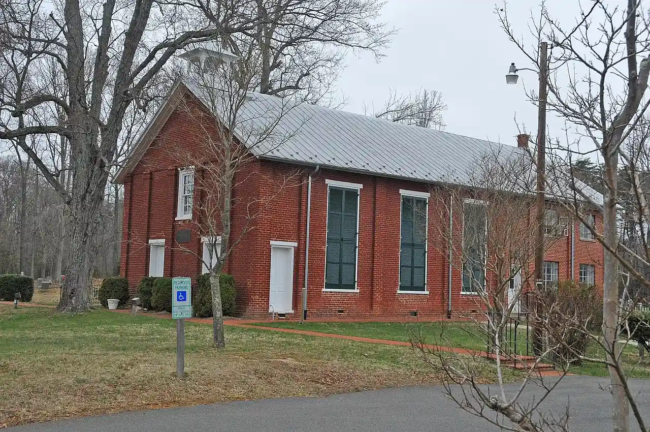 Hartwood Presbyterian Church, also known as the Yellow Chapel Church, is a historic Presbyterian church located at the junction of VA 705 and 612 in Hartwood, Stafford County, Virginia. It was built between 1857 and 1859, and is a rectangular brick Greek Revival style church. The church was restored in 1866, after having been used by both sides during the American Civil War. During the war, it was the site of Wade Hampton's November 1862 capture of 137 men of the 3rd Pennsylvania Cavalry. The property includes the site of the Hartwood Chapel Read more on Wikipedia