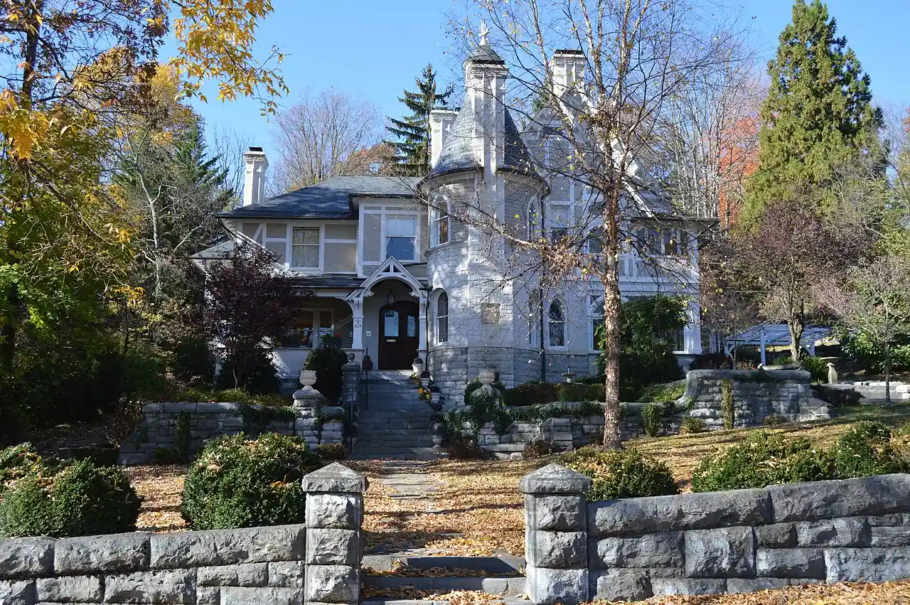 Oakdene is a historic home located at Staunton, Virginia. It was built in 1893, and is a large -story, Queen Anne style frame dwelling with an irregular plan. It has a great variety of textures and materials, and features a carved entrance porch, a central turret with a chimney up the middle two sun porches, several tall chimneys with elaborately corbelled caps and decorative brickwork, and a turret with a conical roof. The main roof is of slate and is composed of both hipped and gabled elements. Oakdene was built for Edward Echols, who served as lieutenant governor of Virginia from 1898 to 1902 and was president of the local National Valley Bank. and Accompanying photo His father General John Echols died at Oakdene in 1896. Read more on Wikipedia
