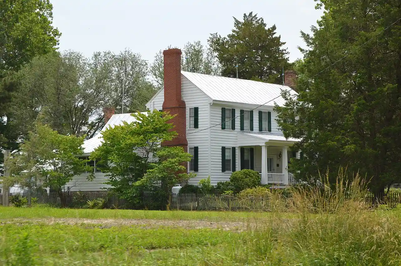 Freeman House, also known as The Stateline House, is a historic home located on the North Carolina-Virginia state line near Gates, Gates County, North Carolina, USA. The house was built in three building phases, the earliest perhaps dating to the late-18th century. The farmhouse was initially built following the basic early-Federal-style one-room plan, followed by the addition of a late-Federal-style two-story side-hall-plan, which was finally enlarged and converted in the mid-19th century to a more substantial Greek Revival style, center-hall-plan dwelling. The main section is a two-story, five-bay, frame structure. Also on the property are the contributing smokehouse, a kitchen with exterior end chimney, a one-story tack house with an attached wood shed, a small, unidentified shed, two large barns, and a stable. Read more on Wikipedia