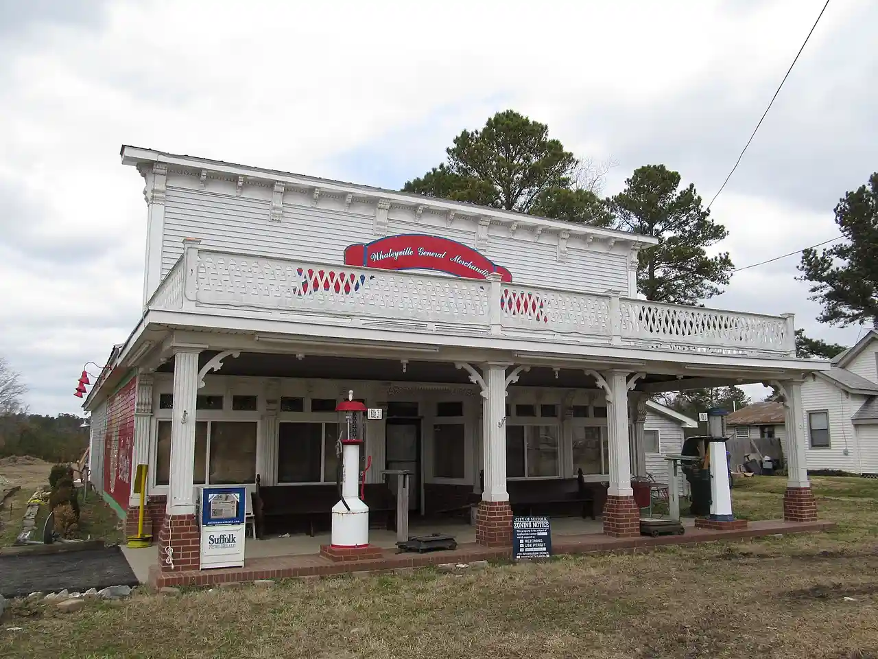Whaleyville Historic District is a national historic district located at Suffolk, Virginia. The district encompasses 103 contributing buildings in the African-American community of Whaleyville in Suffolk. The district includes eight residences, two churches, two school structures, a train depot, a lodge, an outbuilding, and five commercial structures. They are in a variety of vernacular and popular turn-of-the 20th century architectural styles including Queen Anne and Bungalow. Notable buildings include the St. Stephens Holiness Church, Mineral Spring Baptist Church, Odd Fellows Lodge, McAlister Masonic Lodge, Bank of Whaleyville, and the Whaleyville Store. and Accompanying photo and Accompanying map Read more on Wikipedia