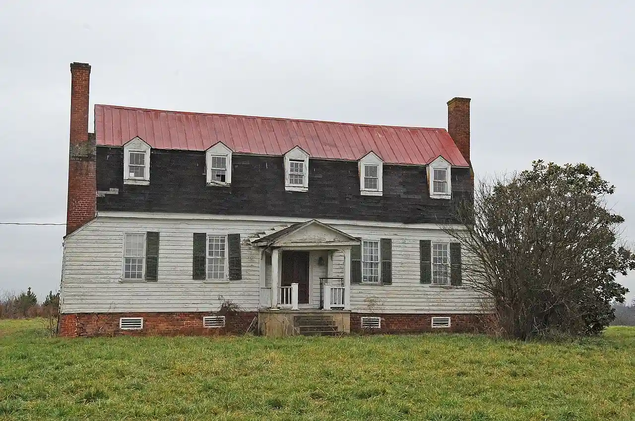 Hunting Quarter is a historic plantation house located near Sussex Court House, Sussex County, Virginia. The main house was built between 1745 and 1772, and is a -story, five-bay, single-pile, center hall, frame dwelling. It has a gambrel roof with dormers and exterior end chimneys. Attached to the main section is a rear ell added in 1887, and two small porches added in the 20th century. Also on the property are a contributing smokehouse, the sites of four outbuildings, the Harrison family cemetery, and a slave cemetery. Hunting Quarter was built by Captain Henry Harrison (c. 1736 – 1772), son of Benjamin Harrison IV of Berkeley. and Accompanying photo During the French and Indian War, Captain Harrison was stationed at Fort Duquesne, he served as a captain under Major General Edward Braddock and later under Lieutenant Colonel George Washington. Captain Harrison was a brother of Benjamin Harrison V, signer of the Declaration of Independence and the fifth Governor of Virginia. Captain Harrison was a breeder of Thoroughbred horses. Silver Heels, perhaps his most famous race horse, was listed among other Thoroughbreds in the inventory of his estate taken after his death in 1772. According to tradition, a walking cane that belonged to US President William Henry Harrison, a nephew of the builder, once hung over one of the mantels in the house. Captain Harrison is buried in the Harrison family cemetery on the property. "Hunting Quarter" remained in the Harrison family until 1887. Read more on Wikipedia
