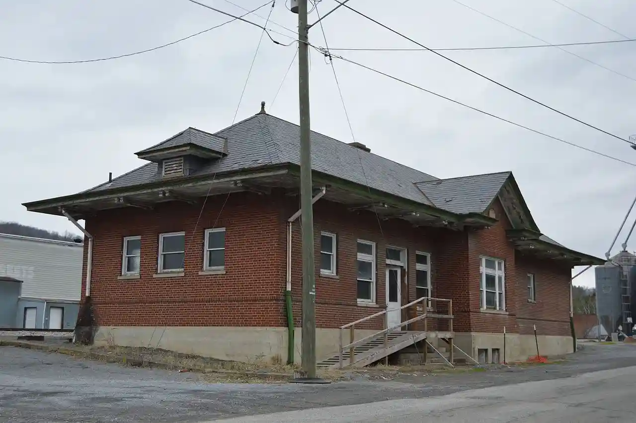 The Tazewell Depot is a historic railroad station at 135 Railroad Avenue in Tazewell, Virginia. It is a long rectangular brick structure, one story in height, with a hip roof that has broad eaves supported by large brackets. Both the long street-facing and track-facing sides have projecting bay sections. The depot was built in 1928 by the Norfolk and Western Railway to serve passenger traffic on its line; the substantial freight volume was handled by a larger adjacent frame building. Passenger service ended about 1957, after which time the depot was also used for freight traffic, which was finally ended in 1974. It is one of two surviving depots that served on the Clinch River Line. Read more on Wikipedia