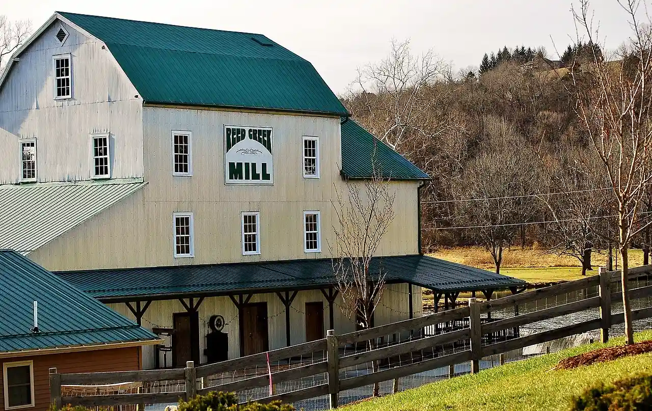 Reed Creek Mill is a historic grist mill at 1565 South Church Street in Wytheville, Virginia. The property includes a c. 1902 wood-frame mill building, a mill dam and raceway, and a c. 1950 storage building. The site has seen industrial use as a mill since 1858; its first mill was torn down late in the 19th century. The present mill building served the local agricultural community until 2004, and has since undergone restoration. Read more on Wikipedia