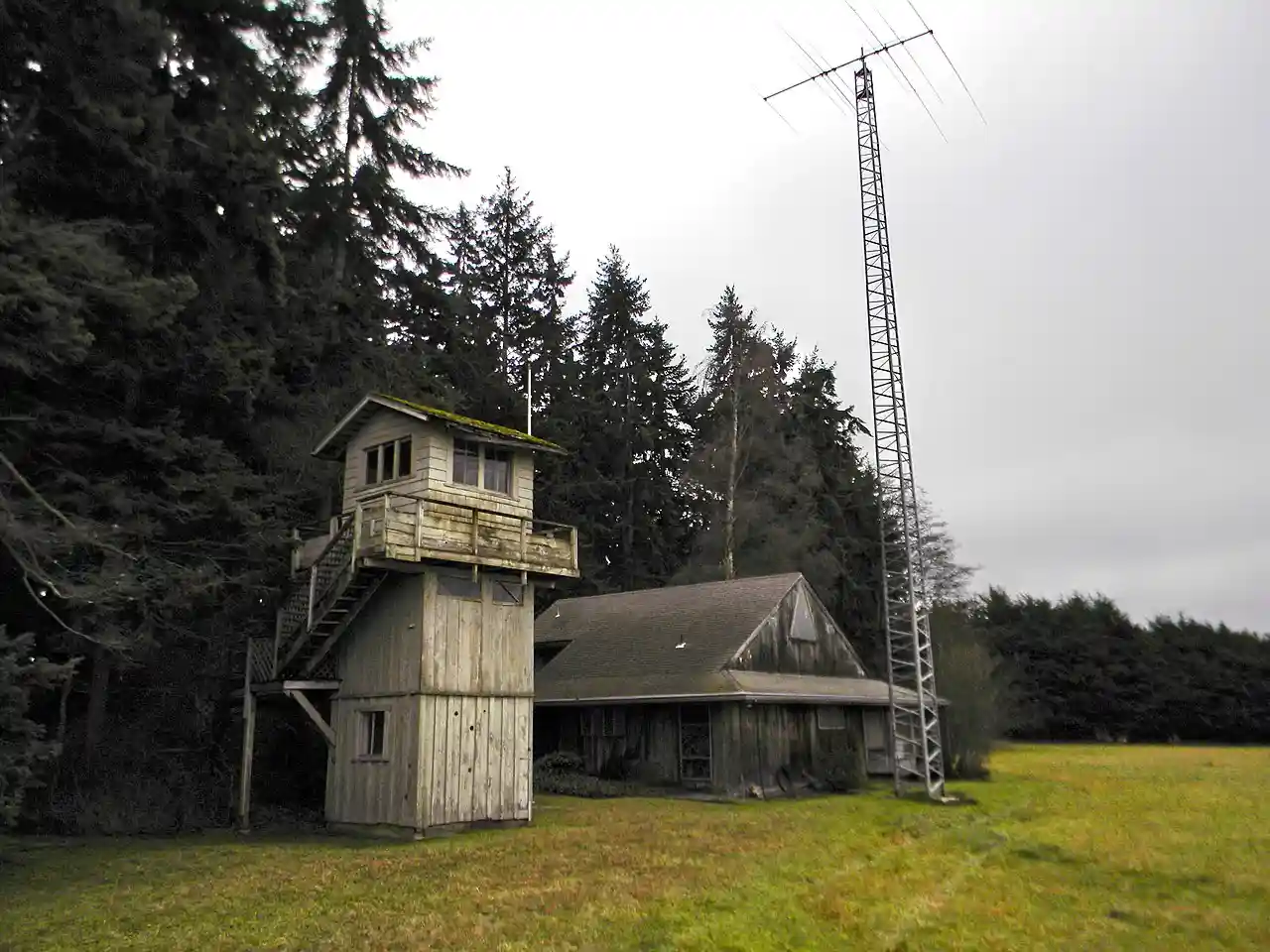The Aircraft Warning Service Observation Tower in Agnew, Washington was built in 1941 as a spotting station for Aircraft Warning Service volunteers watching for intruding Japanese airplanes during World War II. The tower's original site was near Dungeness, but in 1992 the tower was moved to its present location. Read more on Wikipedia
