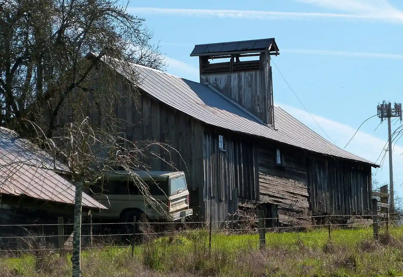 The Arndt Prune Dryer is a specialized agricultural building in Ridgefield, Washington. Built about 1898, it is one of the last traditional farm-built prune dryer buildings in Washington, using a wood fire and natural draft to dry locally grown fruit. Prunes were a major crop in the Vancouver region, as the dried fruit could be shipped economically to markets without refrigeration or spoilage. Read more on Wikipedia