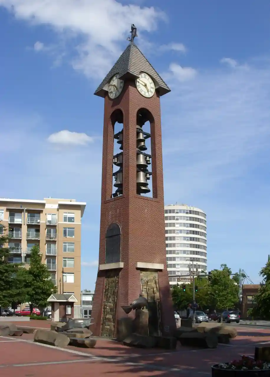 The Salmon Run Bell Tower is a bell tower and glockenspiel in Vancouver, Washington's Esther Short Park, in the United States. Read more on Wikipedia
