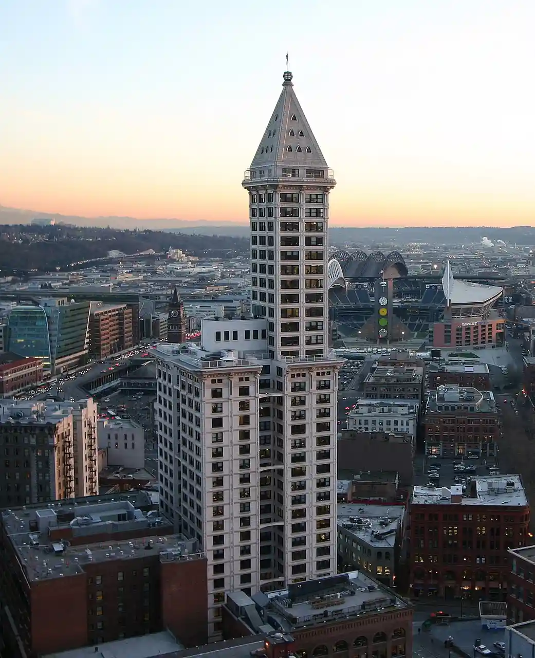 Smith Tower is a skyscraper in the Pioneer Square neighborhood of Seattle, Washington, United States. Completed in 1914, the 38-story, tower was among the tallest skyscrapers outside New York City at the time of its completion. It was the tallest building west of the Mississippi River until the completion of the Kansas City Power & Light Building in 1931. It remained the tallest building on the U.S. West Coast for nearly half a century, until the Space Needle overtook it in 1962. Read more on Wikipedia