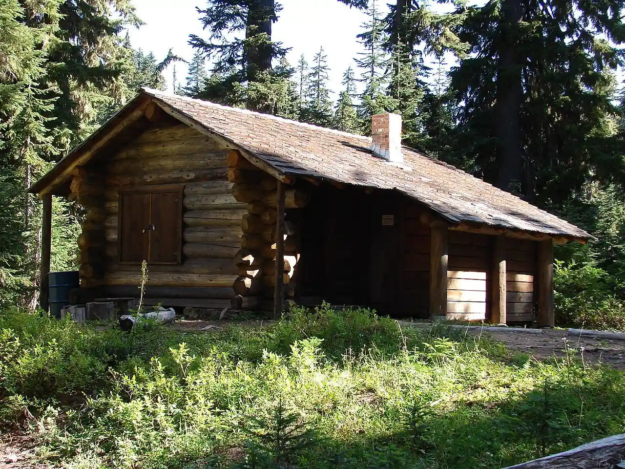 The Three Lakes Patrol Cabin was built in 1934 in Mount Rainier National Park as a district ranger station. The log cabin was built to a standard plan designed by W.G. Carnes, Acting Chief Architect of the National Park Service Branch of Plans and Designs, supervised by Thomas Chalmers Vint. The cabin measures about by . It is a simple gable structure with a shed roof over the front door, supported by brackets. The eaves have a similar bracket detail. Log ends project prominently at the corners. It consists of a single room, unfinished apart from a wood floor. Read more on Wikipedia