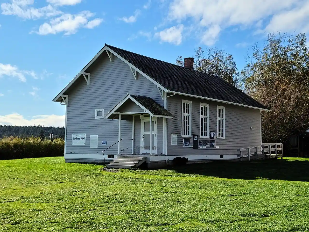 The Port Stanley School is located on Lopez Island, in the San Juan Islands (San Juan County), Washington, in the United States. It was listed on the U.S. National Register of Historic Places in 1994. The building was restored in 2003 and currently serves as an exhibit of the Lopez Island Historical Society and community space. Read more on Wikipedia