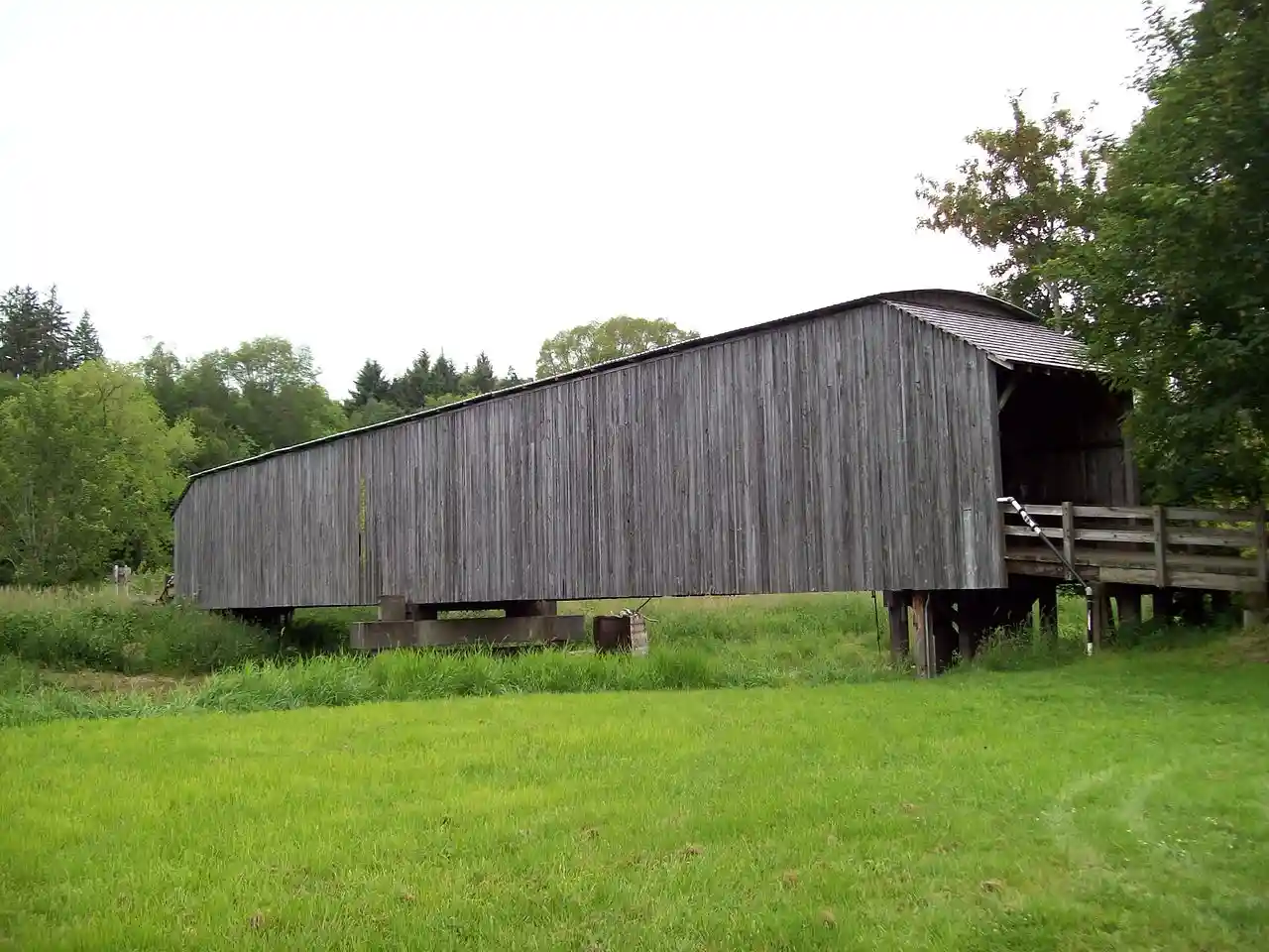 The Grays River Covered Bridge is a one-lane covered bridge over the Grays River in western Wahkiakum County, Washington. It is the only covered bridge still in use as a public highway in Washington State. The bridge was added to the National Register of Historic Places in 1971. Read more on Wikipedia