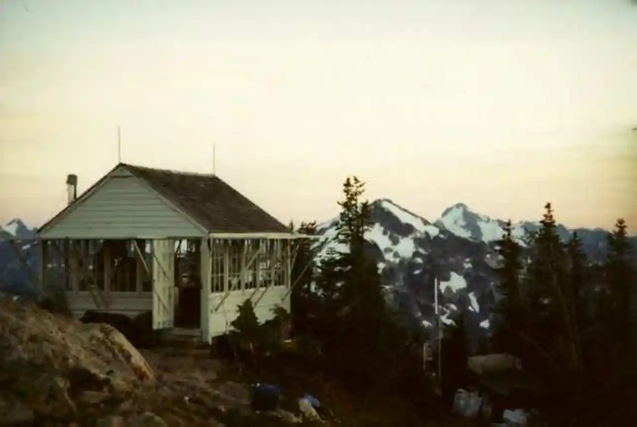 The Copper Mountain Fire Lookout was built in 1934 in what was then the Glacier Ranger district of Mount Baker National Forest. The cabin-like wood frame lookout is a frame cabin with large windows on each side protected by an awning-style shutter. A shingled gable roof with prominent lightning rods covers the cabin. The lookout measures by square. During the winter of 1943 the lookout was staffed by the Aircraft Warning Service and used to watch for enemy aircraft. It is one of three lookouts remaining in North Cascades National Park from the Forest Service administration. Read more on Wikipedia