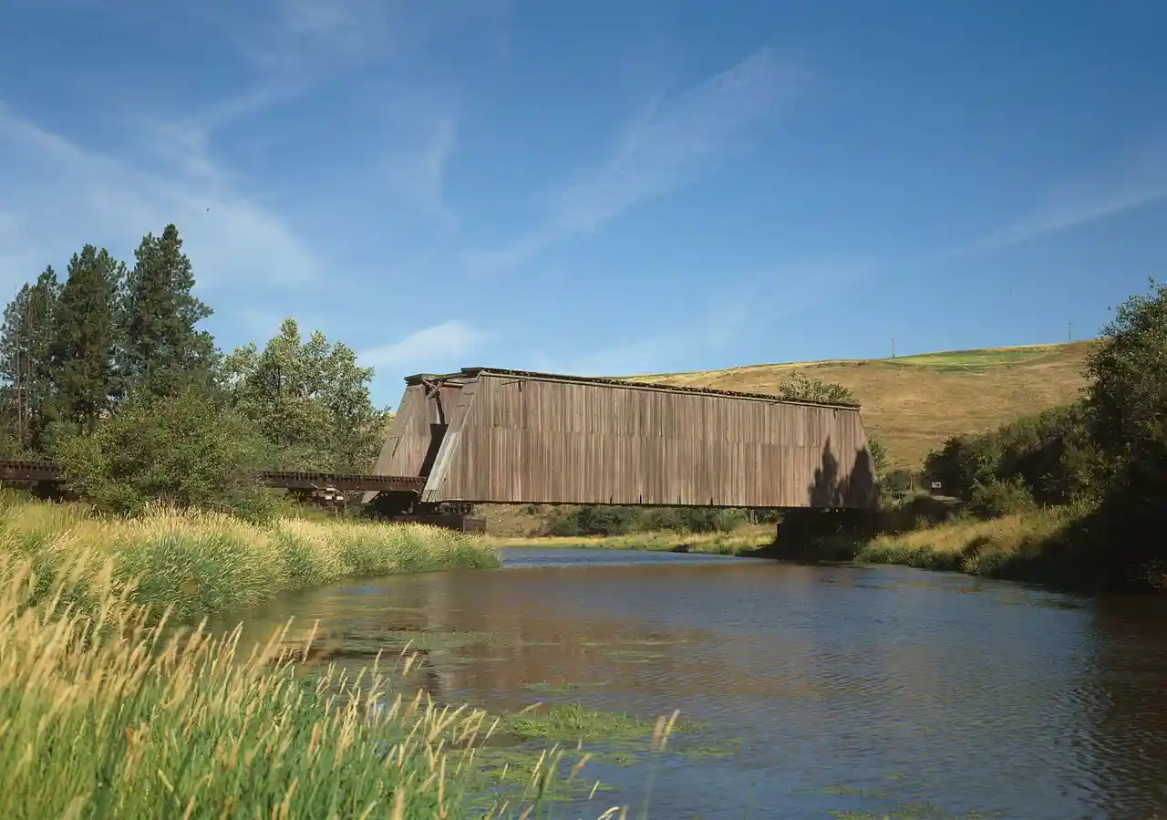 The Manning-Rye Covered Bridge, spanning the Palouse River near Colfax, Washington, was built around 1918. It was listed on the National Register of Historic Places in 1982. It has also been known as the Harpole Bridge. Read more on Wikipedia