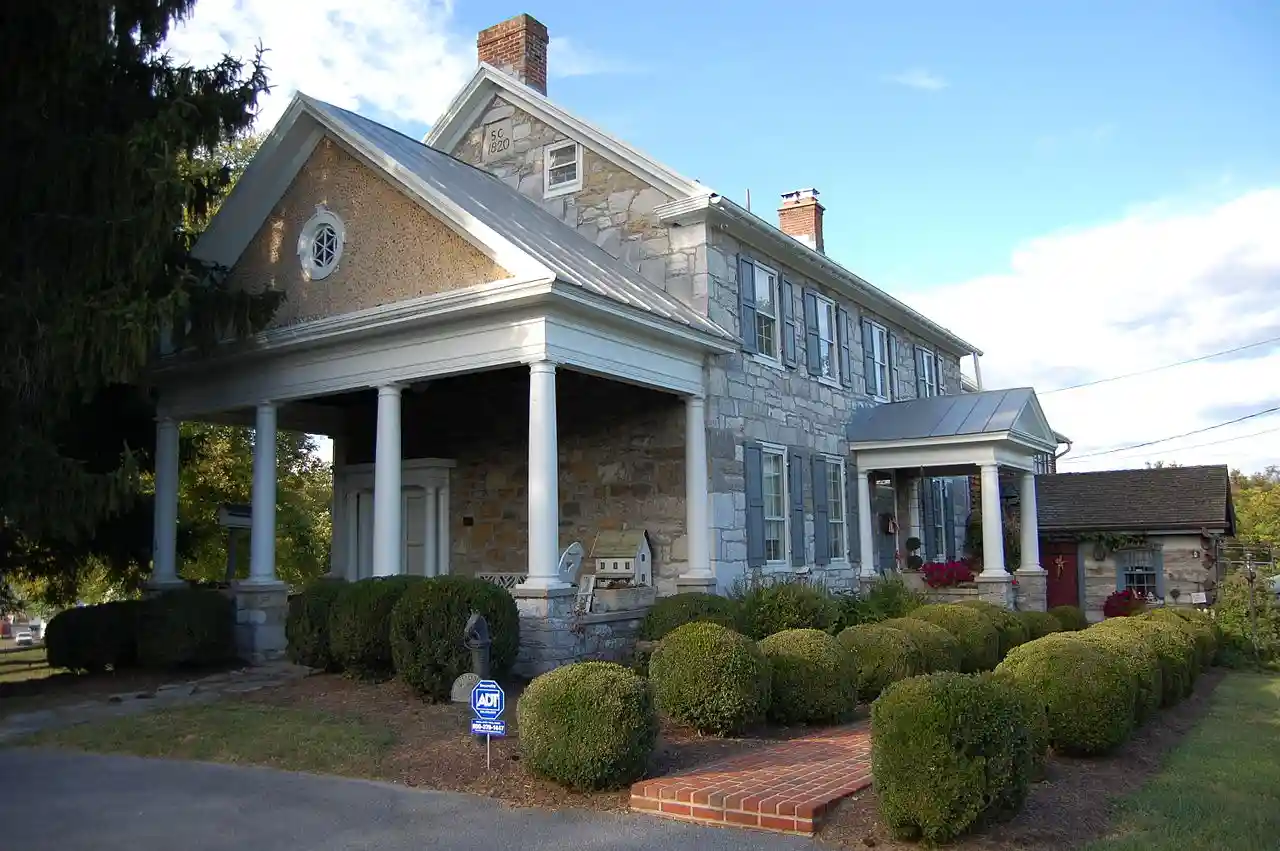 Samuel Cunningham House, also known as Pleasant View Farm, is a historic home located near Hedgesville, Berkeley County, West Virginia. It was built in 1820 and is a two-story, eight-bay, gable roofed stone and brick house. The house was expanded about 1840 and a Colonial Revival style porch was added in the early 20th century. Also on the property is a brick smoke house. Read more on Wikipedia