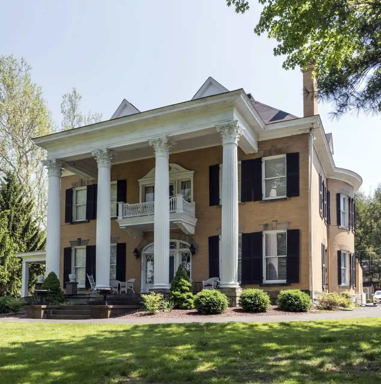 Beallmore, also known as the William T. Jr., and June Booher House, is a historic mansion located at Wellsburg, Brooke County, West Virginia. It was built in 1907, and is a 2 /2 story brick dwelling with a hipped roof in the Classical Revival style. The brick used is a pressed, glazed orange brick. It features a two-story, tetrastyle portico supported by fluted Corinthian order columns. Read more on Wikipedia