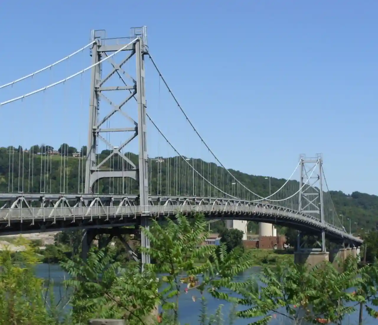 The Fort Steuben Bridge, originally the Weirton-Steubenville Bridge, was a suspension bridge which spanned the Ohio River from Steubenville, Ohio to Weirton, West Virginia and carried U.S. Route 22 and then Ohio State Route 822 during its existence. Completed in 1928 and opened as a toll bridge, the Fort Steuben Bridge was a more direct route for the flow of traffic across the river; particularly for trucks and heavy vehicles from the industrial area. The Fort Steuben Bridge was weight-restricted in 2006 and closed in 2009 due to deterioration. The bridge was demolished by Joseph B. Fay Co. on February 21, 2012. Read more on Wikipedia