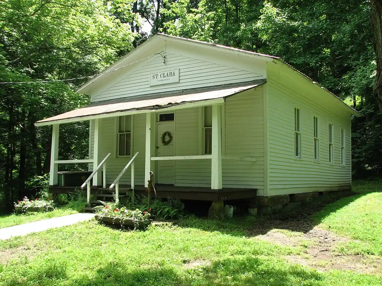 Krenn School, also known as St. Clara Community Building, is a historic one-room school building located at New Milton, Doddridge County, West Virginia. It was built in 1897, and is a one-story rectangular, wood-frame building measuring 35 feet deep and 24 feet wide. It has a low pitched gable roof covered in corrugated metal. The building was renovated in 1922. It was used as a school until the late 1930s, at which time it became a community center. Read more on Wikipedia