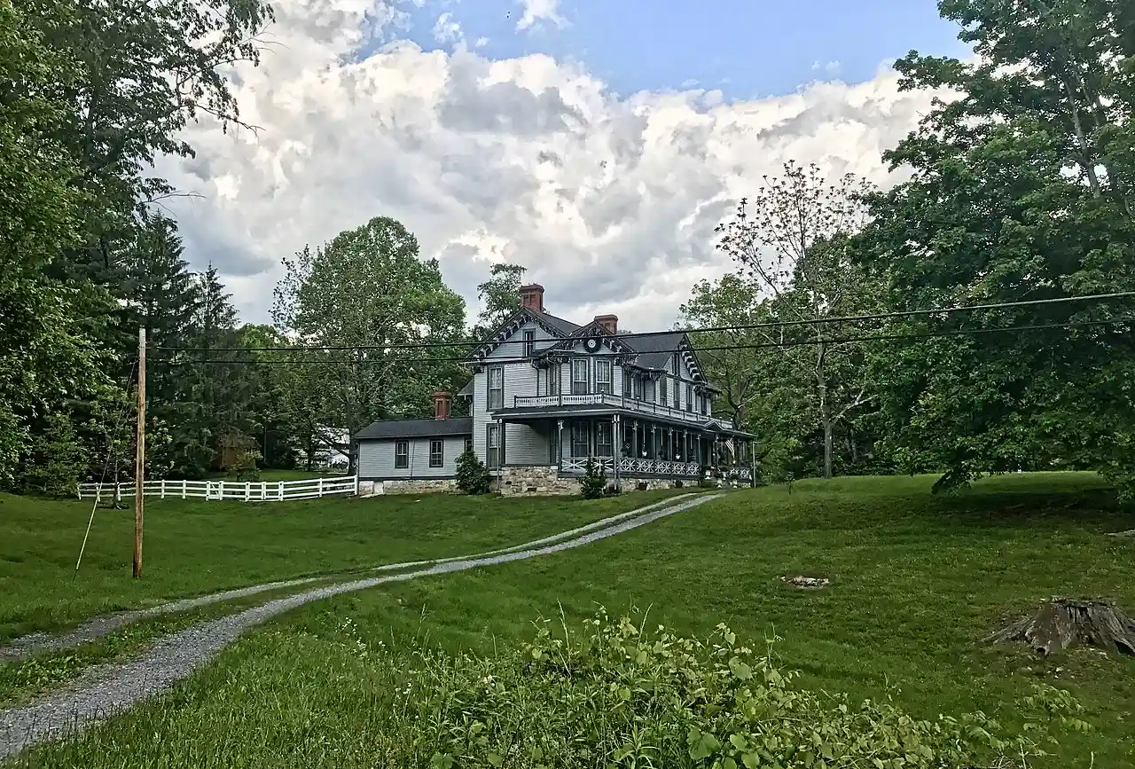 Page-Vawter House in the town of Ansted in Fayette County, West Virginia was built in 1889-90 by company carpenters of the Gauley Mountain Coal Company for the family of William Nelson Page, who was company president. The palatial Victorian mansion is located on a knoll in the middle of town. William and Emma (née Gilham) Page raised their four children there, attended by a staff of 8 servants. Read more on Wikipedia