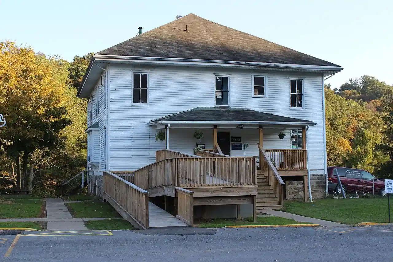 Gilmer County Poor Farm Infirmary is a historic poor farm infirmary building located near Glenville, Gilmer County, West Virginia. It was built in 1907, and is a two-story, three-bay, center entrance frame building with a cross-hip pitched roof and Colonial Revival-style details. The infirmary was in operation until 1941, after which it was used as a day care center and as meeting space for local social and civic organizations. Read more on Wikipedia