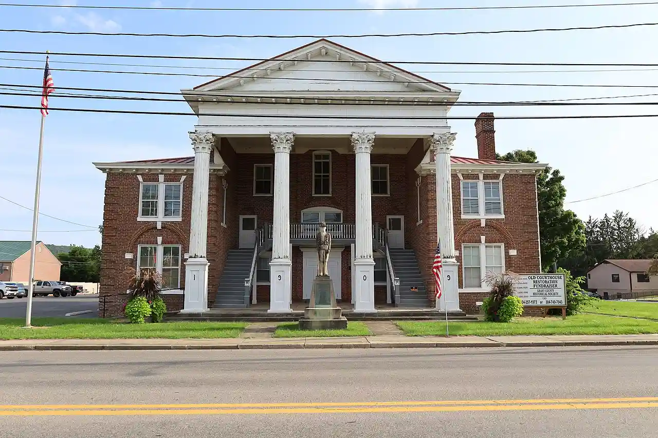 Grant County Courthouse, also known as the Old Grant County Courthouse, is a historic county courthouse located at Petersburg, serving Grant County, West Virginia. The original section was built in 1878–79 and expanded in 1909. It is composed of 3 two-story brick rectangles consisting of a large center section with lower and narrower wings. The building is styled with Neo-Colonial design features. The center section features a two-story projecting portico with pediment and supported by four Corinthian order fluted columns. Read more on Wikipedia
