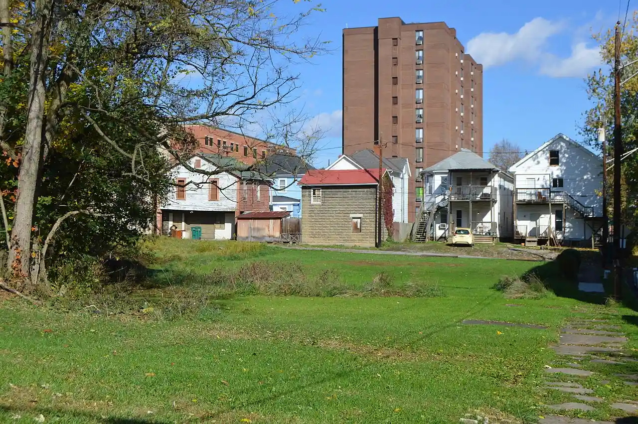 The Trinity Memorial Methodist Episcopal Church, also known as Trinity Methodist Church, was a historic Methodist Episcopal church at 420 Ben Street in Clarksburg, Harrison County, West Virginia. It was built in 1902, and was a modest late-Victorian Gothic-Romanesque style brick structure. It was a two-story rectangular building with a slate covered gable roof. It featured a three-story, square bell tower with an open belfry. Read more on Wikipedia