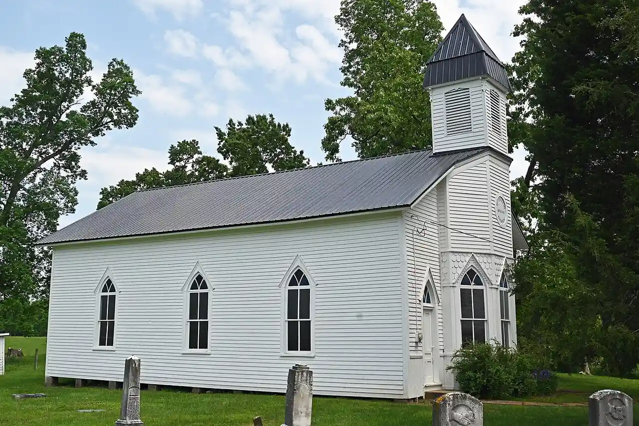 Otterbein Church, also known as Otterbein United Brethren Church, is a historic Methodist church near Evans, Jackson County, West Virginia. It was built in 1896, and is a single-story frame building sheathed in clapboard with a vertical wainscoting in the Late Gothic Revival-style. It features a square tower with rectangular vents on each side, small brackets, and a hipped-pyramidal roof. Also on the property is the church cemetery dating to roughly 1864. Read more on Wikipedia