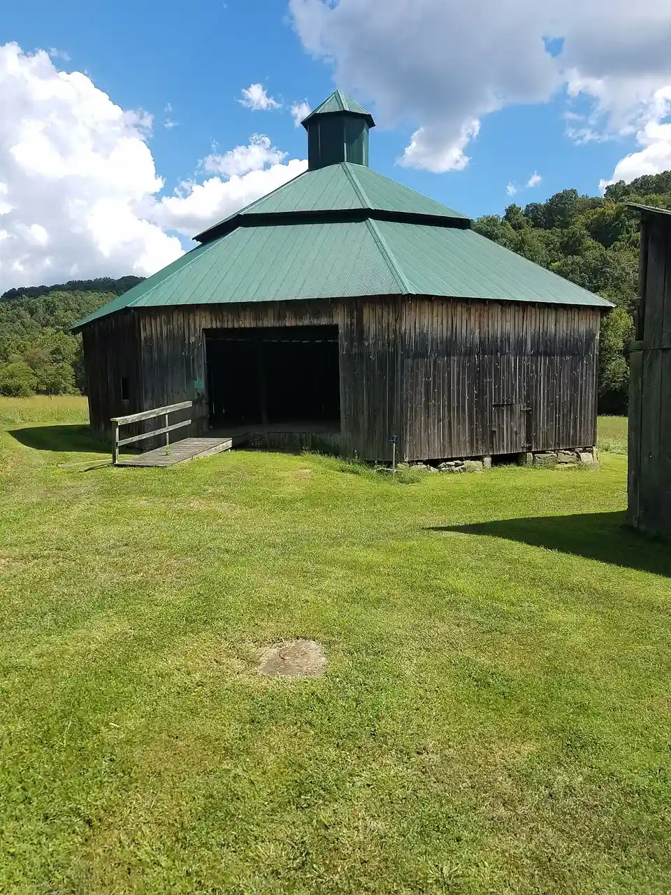 Rankin Octagonal Barn is a historic octagonal barn located near Silverton, Jackson County, West Virginia. It was built about 1890, and is an eight-sided frame structure covered with vertical wide board siding. Each side of the octagon measures 24 feet in length. It features a central cupola to provide light and ventilation. Read more on Wikipedia