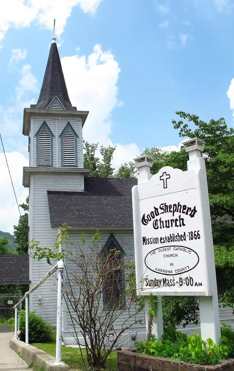 Good Shepherd Church, also known as Good Shepherd Mission, is a historic Roman Catholic church at SR 61 SW of East Bank Coalburg, Kanawha County, West Virginia. It was built about 1880, and consists of a five bay, one-story ell with a steeply pitched front gabled roof. It sits on a high raised limestone foundation. Also on the property is an ornate Celtic cross that rests on earth from County Kerry, Ireland, and was placed there in 1912. The church is significant in part due to its association with Irish and Italian immigrant miners during the early years of the church. Read more on Wikipedia