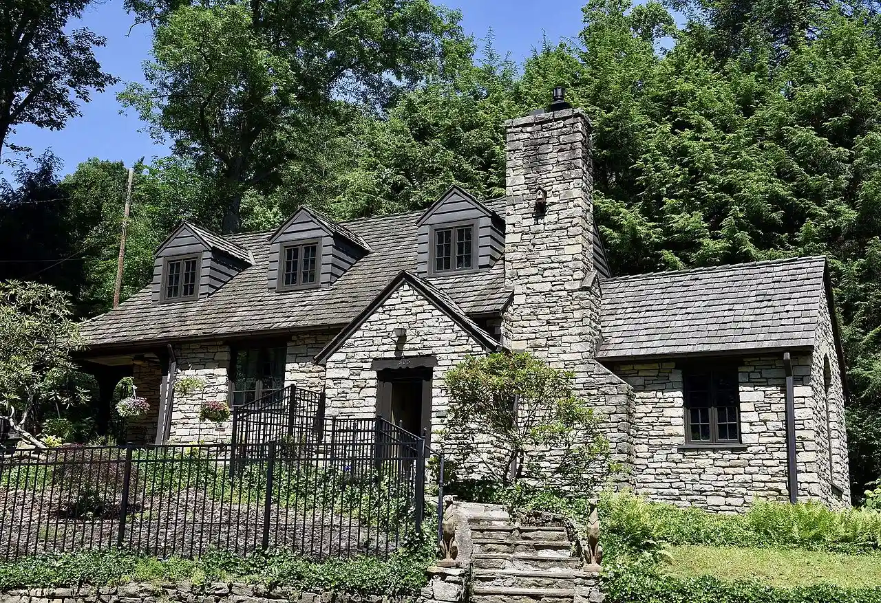 The Summers House is a historic house located at 805 Loudon Heights Road in Charleston, West Virginia. Elizabeth and Okey Summers had the house built circa 1939; Elizabeth was active in theater, while Okey was a prominent local banker. The house was part of Charleston's upper-class South Hills neighborhood, and its site was a former stone quarry that was solid rock prior to the house's construction; the sandstone from the quarry was used as the house's building material. Architect Charles A. Havilant, a prolific local architect responsible for many of the city's homes and civic institutions, designed the Tudor Revival home. The house lacks many of the typical characteristics of Tudor architecture, such as a steep roof and half-timbering, due to Elizabeth's preference and the limitations of the site; its prominent features include tall chimneys, casement windows with diamond-shaped leaded glass panels, and a cathedral ceiling. Read more on Wikipedia