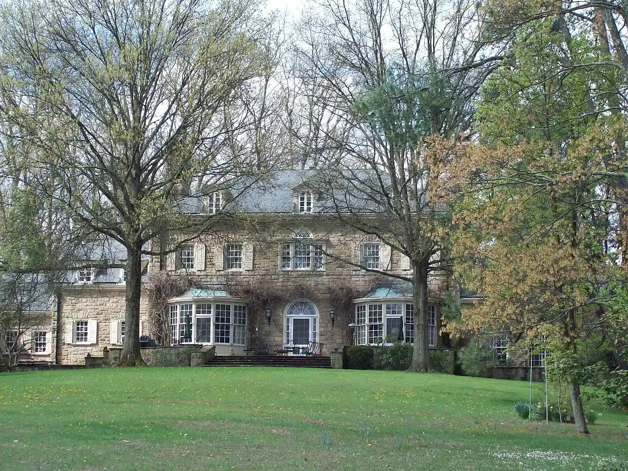 W. E. Chilton II House is a historic home located at Charleston, West Virginia. It is a neo-Georgian stone house designed by nationally known architect William Lawrence Bottomley and built in 1933, for W. E. Chilton II and his wife Nancy Ruffner Chilton. The -story central block of the house is flanked symmetrically by single-story wings. Read more on Wikipedia