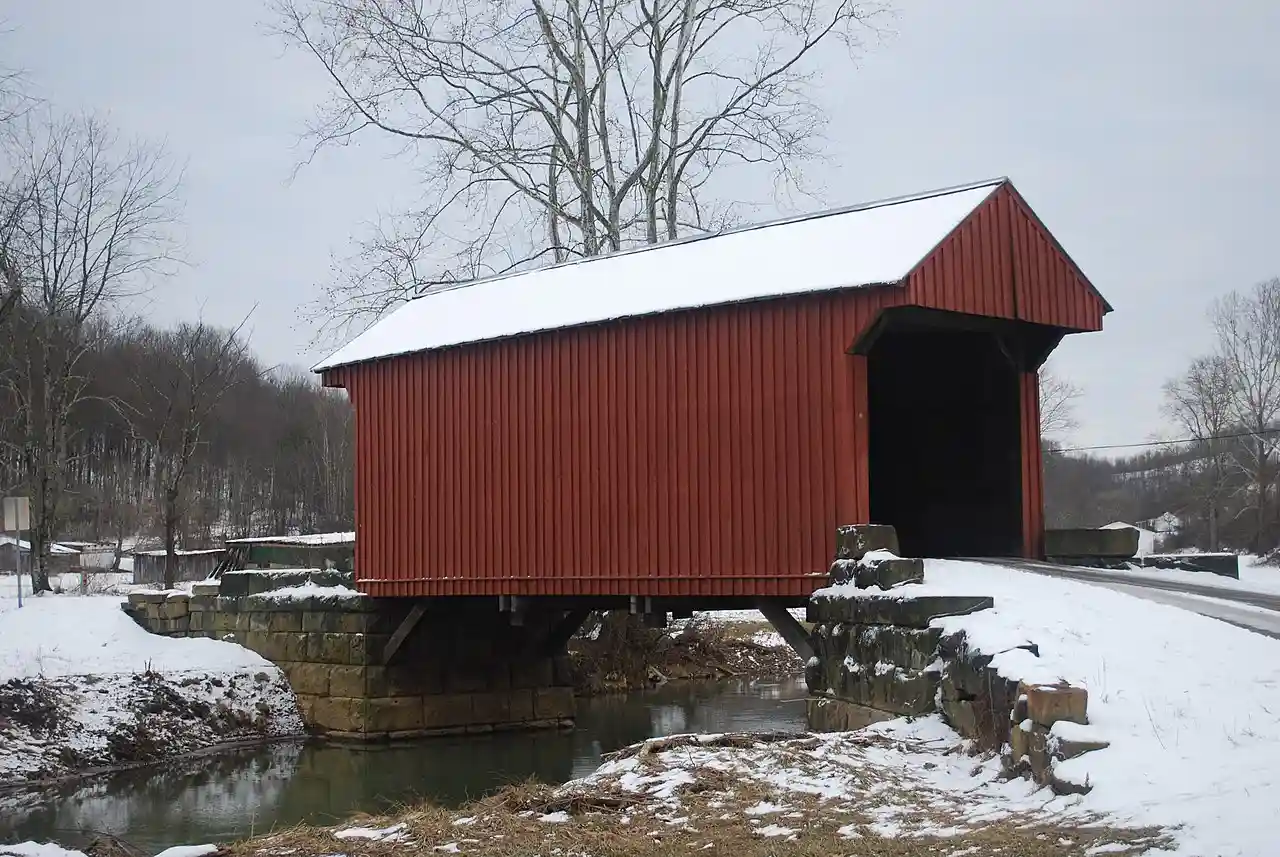 Walkersville Covered Bridge is a historic covered bridge near Walkersville, Lewis County, West Virginia. It was built in 1903, and is a Queen post truss bridge measuring 12 feet, 1 1/2 inches wide and 39 feet, 4 inches long. It has red board-and-batten siding and a standing seam metal roof. It was built to span the right fork of the West Fork River. Read more on Wikipedia
