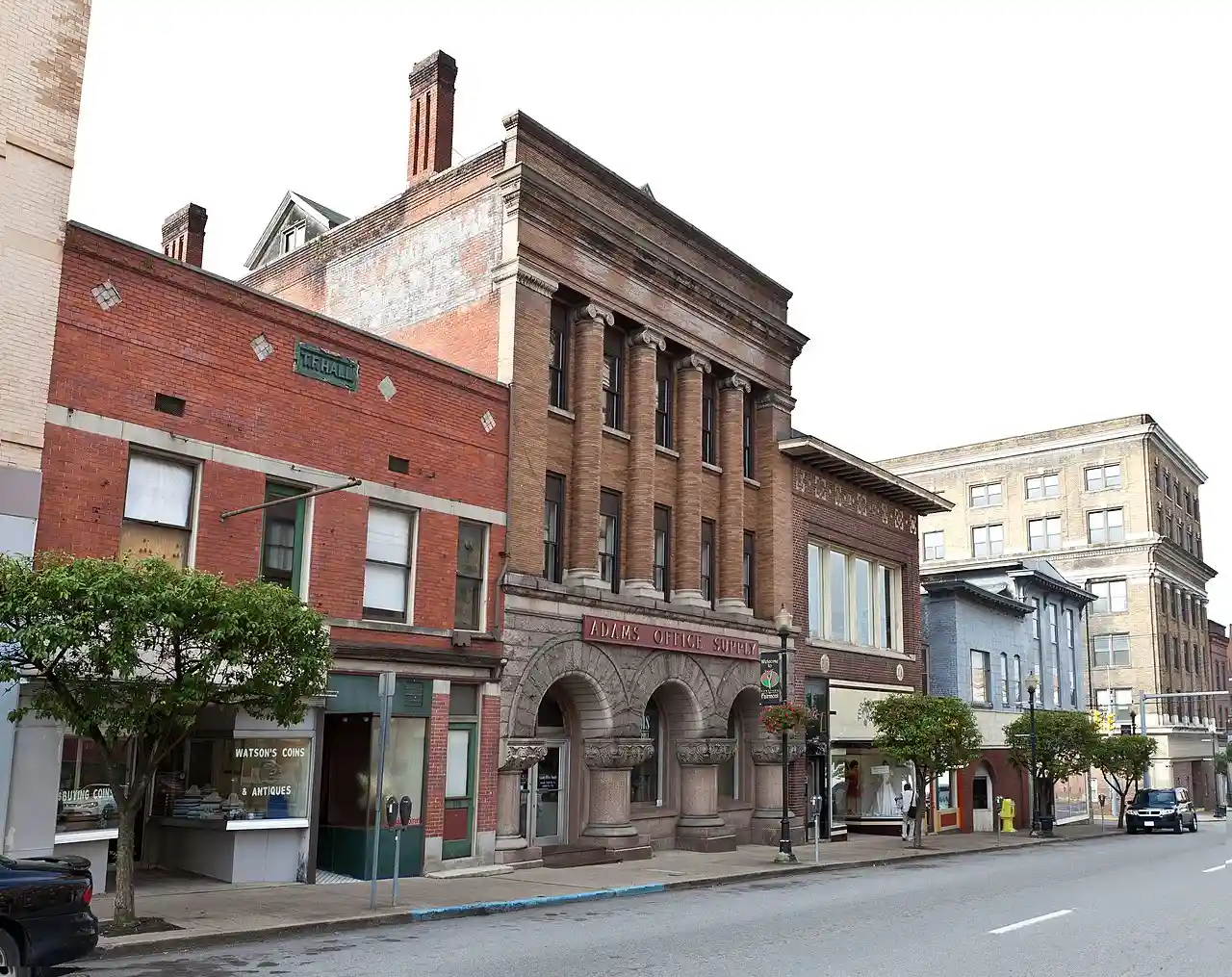 Fairmont Downtown Historic District is a national historic district located at Fairmont, Marion County, West Virginia. The district includes 97 contributing buildings and two contributing structures in Fairmont's central business district. They are in a variety of late 19th- and early 20th-century architectural styles. Notable buildings include the Watson Building (1909–1911), U.S. Court House and Post Office (1940), Monongahela Valley Traction Freight House (1927), the Jacobs and Hutchinson complex, and the Library (1914). The Marion County Courthouse and Sheriff's House and Robert H. Mollohan-Jefferson Street Bridge are located in the district and listed separately on the National Register of Historic Places. Read more on Wikipedia