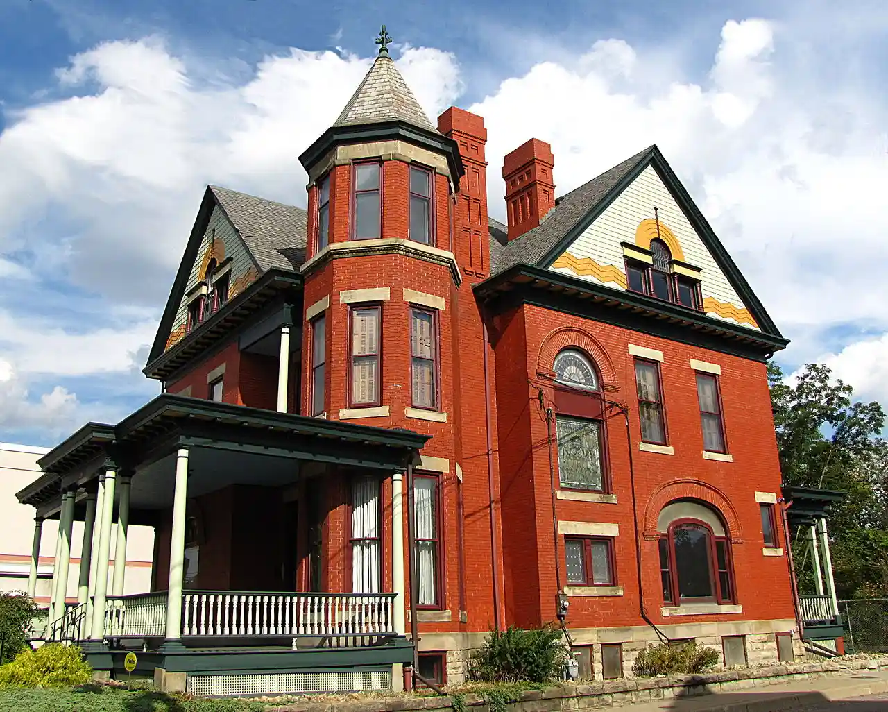 Judge Frank Cox House is a historic home located at Morgantown, Monongalia County, West Virginia. It was designed by Morgantown architect Elmer F. Jacobs and built in 1898. It is a -story Queen Anne style brick dwelling. It features a three-story tower, ornate wood porches, stained glass windows and elaborate interior woodwork. It was the home of Judge Frank Cox, a prominent lawyer who served as prosecuting attorney and Judge on the Supreme Court of Appeals of West Virginia. Read more on Wikipedia